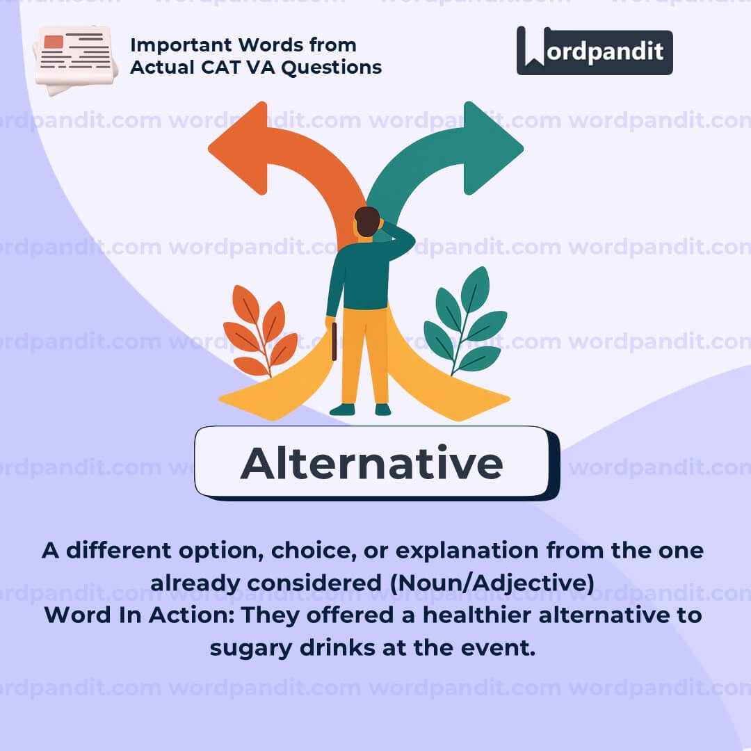 Meaning: A different option, choice, or explanation from the one already considered (Noun/Adjective)