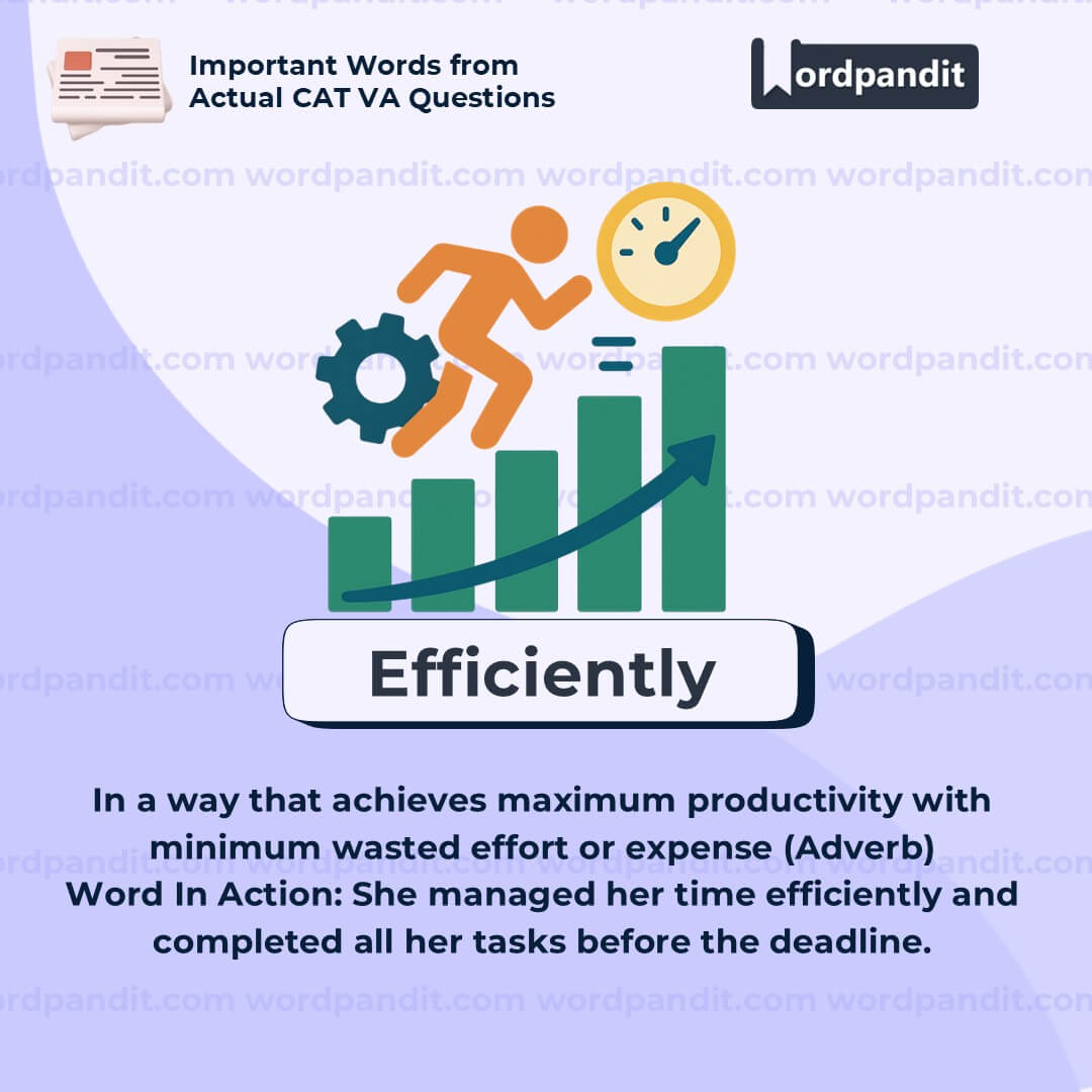“Efficiently” comes from “efficient,” which means productive with minimal waste. Think of a high-speed train—fast, smooth, and never off track.