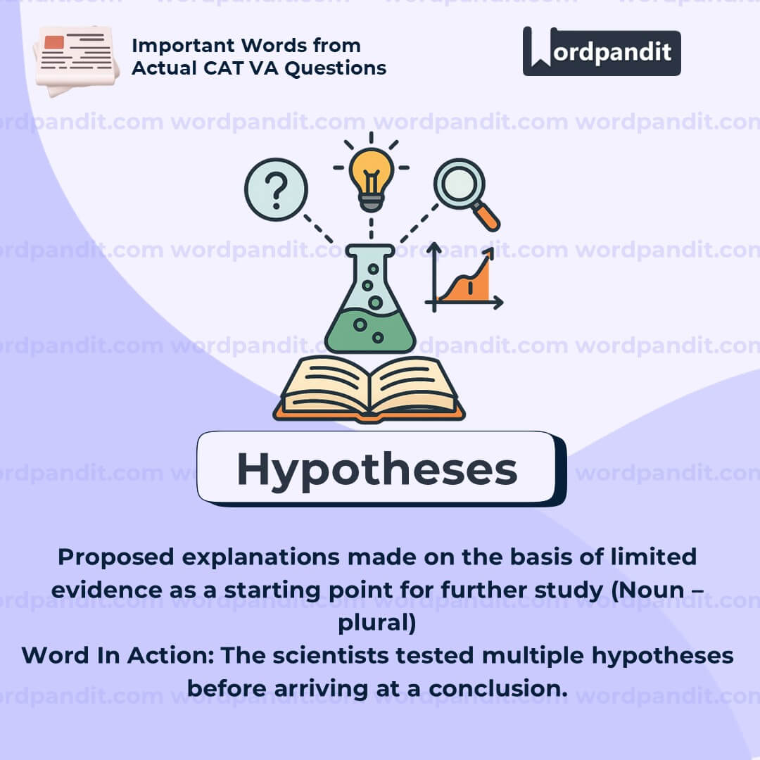 Meaning: Proposed explanations made on the basis of limited evidence as a starting point for further study (Noun – plural)