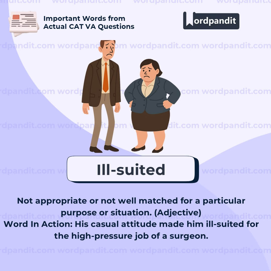 Etymology: "Ill" (meaning bad or wrong) + "suited" (from suit, meaning to be appropriate or match); literally âbadly matchedâ