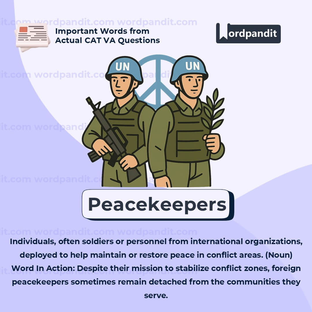 This is a key word in international relations and conflict studies. While it suggests a positive role, always check the contextâpeacekeepers may face criticism for being ineffective, distant, or even exploitative in some missions. Use with nuance.