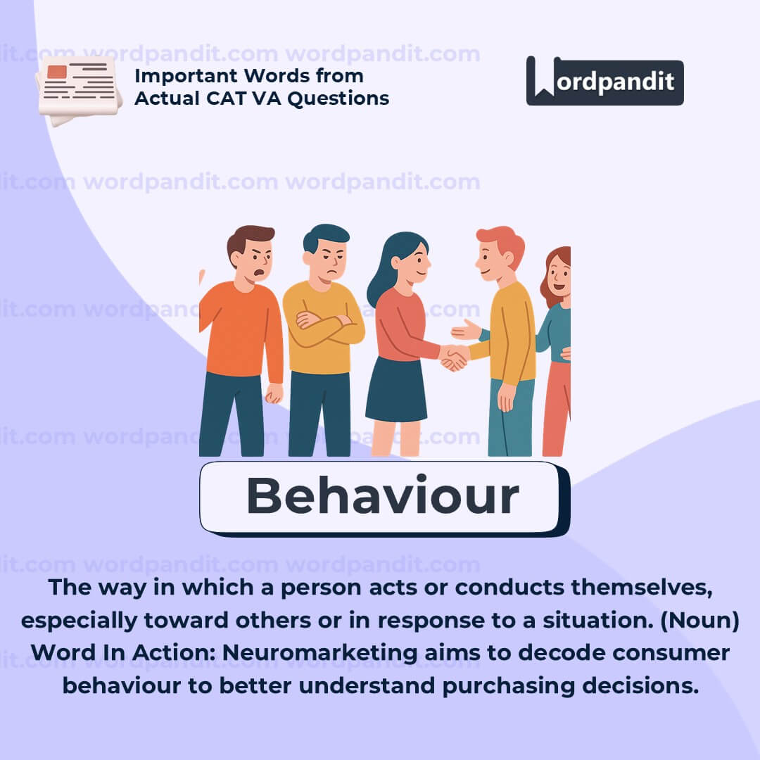 âBehaviourâ refers to the actions or reactions of a person (or animal) in response to external or internal stimuli. In this sentence, âconsumer behaviourâ specifically means the patterns and processes by which people decide what to buy, how much to buy, and why they prefer certain products or brands. Understanding behaviour is key to fields like psychology, marketing, and education because it helps predict and influence future actions.