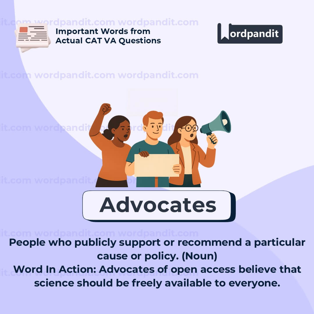 The word “advocate” is a powerful one—it doesn’t just mean to support but also to take action or speak out. Whether it’s human rights, environmental causes, or open science, advocates play a vital role in driving change. Also, don't confuse the noun (a supporter) with the verb (to support or argue for something).