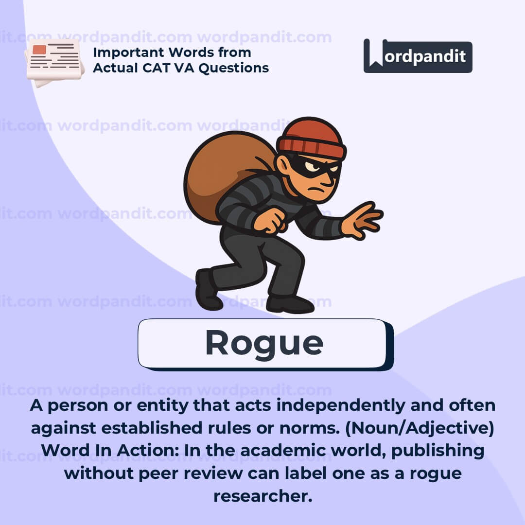 "Rogue" often describes someone who defies convention or authority. In academic or professional settings, it may imply innovation, rebellion, or risk-taking. Whether it's positive or negative depends on context. In pop culture, think of “rogue agents” or “rogue nations”—actors operating independently and sometimes causing disruption.