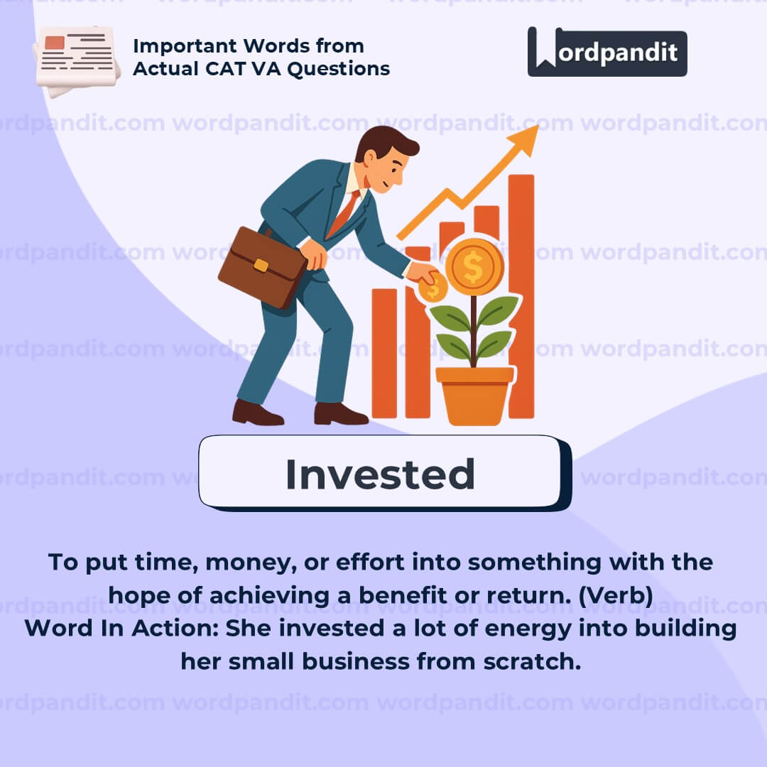 Write a sentence using âinvestedâ in a non-financial context. Now rewrite it in a financial one. Compare the difference in tone and usage.