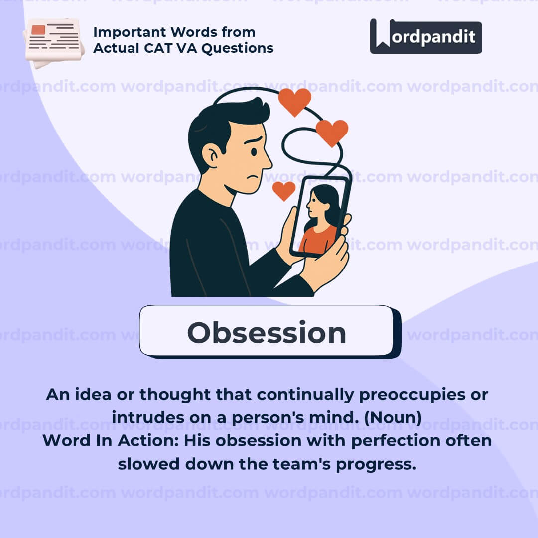 Think of âobsessionâ as something that âsits onâ your mind and refuses to leaveâlike an idea camping out in your head rent-free!