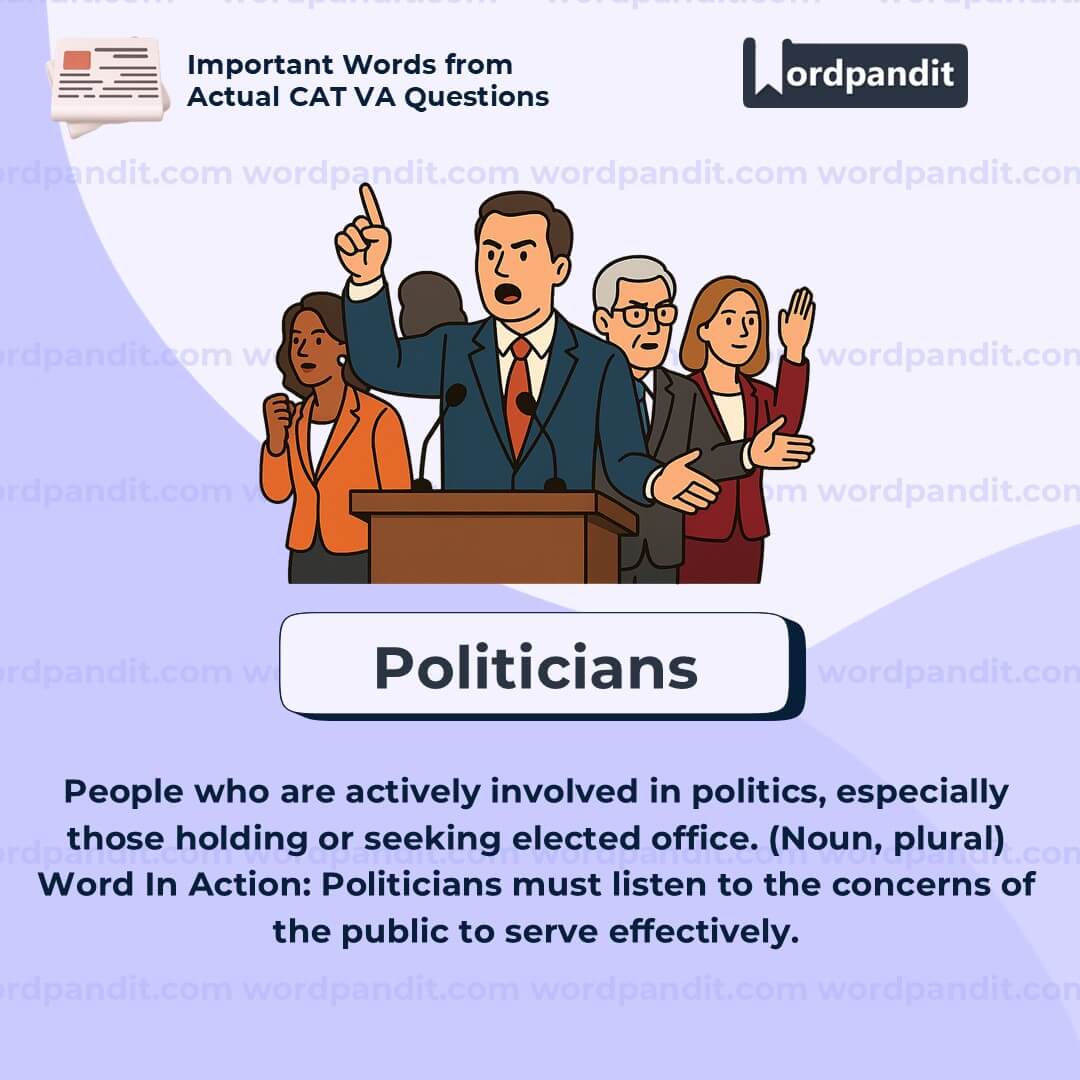 This is one of the most commonly heard words in the news and public debates. While the role of politicians is essential in democracy, it's equally important to understand the responsibilities and powers they hold. Always analyze political language critically.