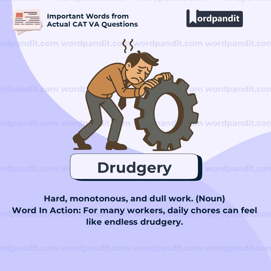 Think: “Drudge = Drag.” Drudgery is the kind of work that feels like dragging yourself through it!