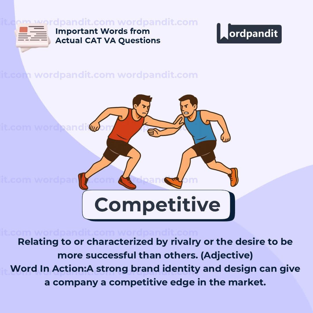 “Competitive” is not just about winning—it’s about maintaining an edge, pushing boundaries, and staying relevant. Think of exams, sports, business, or job markets—being competitive means you're in the race and fighting to stay ahead.