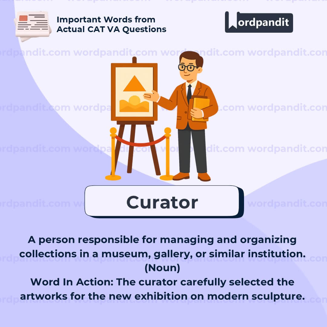 A curator is someone who is in charge of selecting, organizing, and presenting items or ideas in a meaningful way, typically in museums, exhibitions, or cultural events. In modern contexts, curators are not limited to art or historyâthey can oversee fashion shows, digital content, or educational programs. Their role involves deep knowledge of the subject matter, a sense of aesthetics, and the ability to communicate a narrative or theme to an audience.
