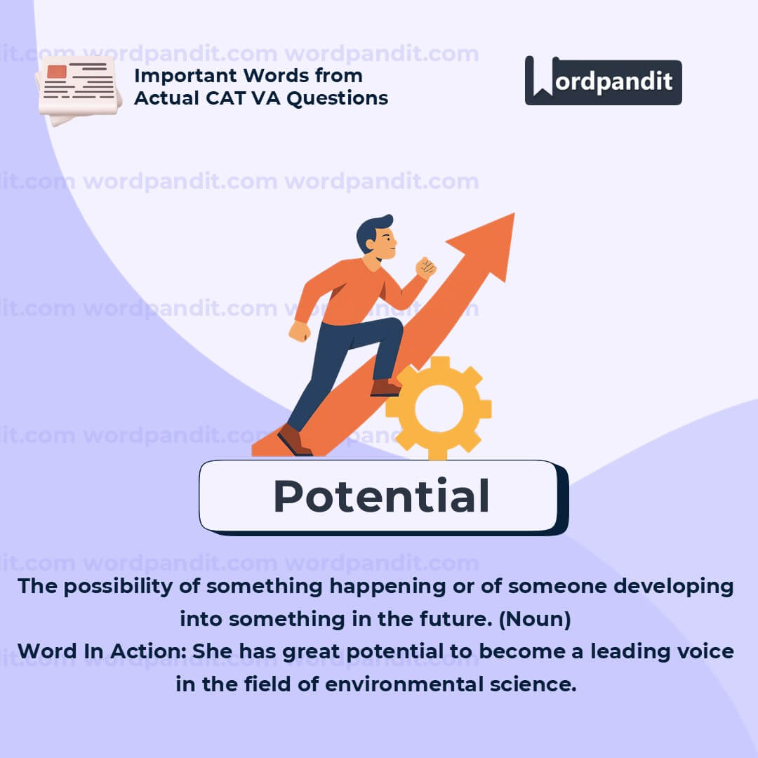 "Potential" is often used to talk about talent, risk, or opportunity. Whether in people, ideas, or actions, it refers to what could be, not necessarily what already is. Keep an eye on how it modifies nouns—it tells you what something is capable of becoming or causing.