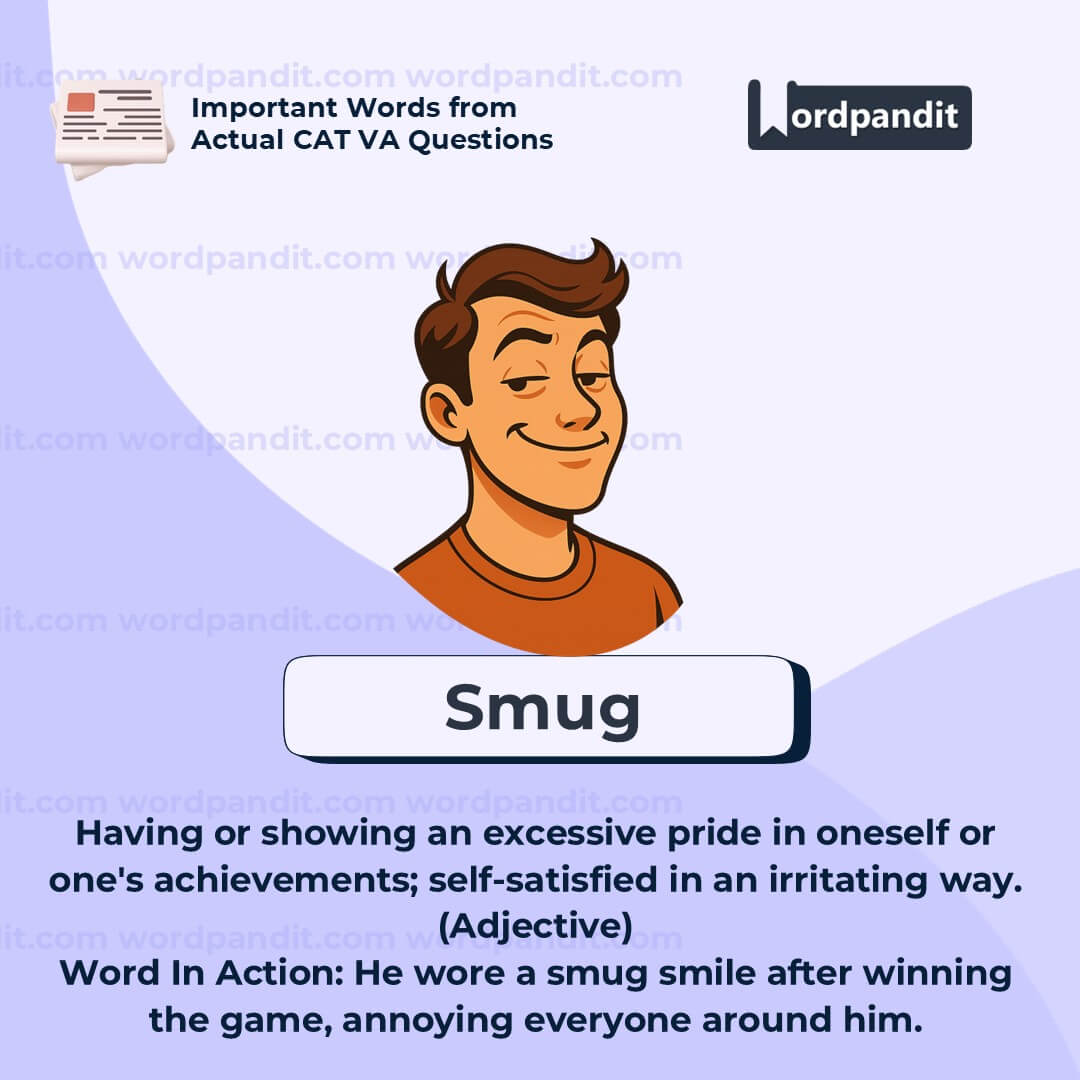 Imagine a person with a “smug mug”—a face wearing a proud, self-satisfied grin that’s hard to forget!