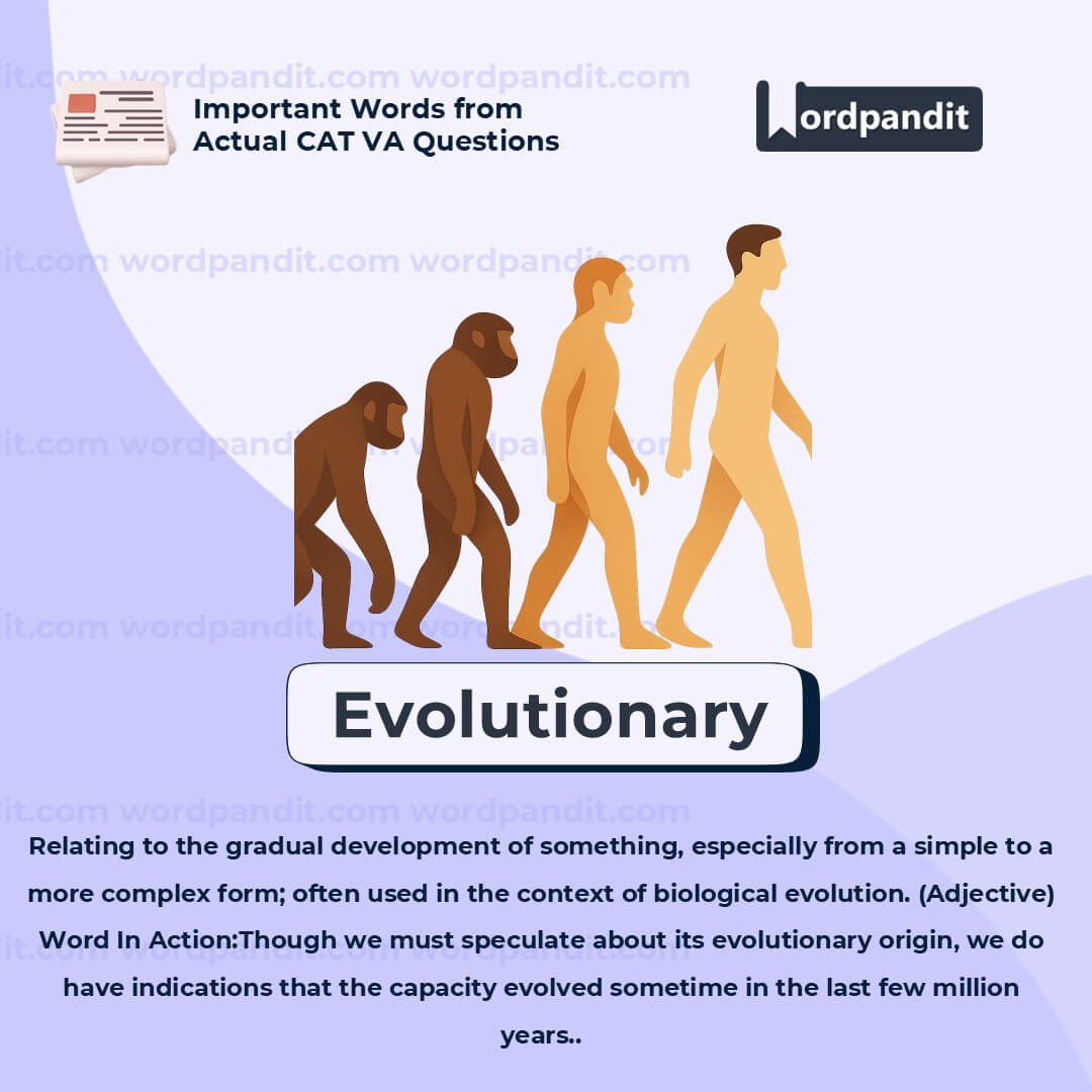 This word is vital for discussing growth — not just in biology, but in technology, society, and even ideas. “Evolutionary” shows how something changes step by step, often over long periods.