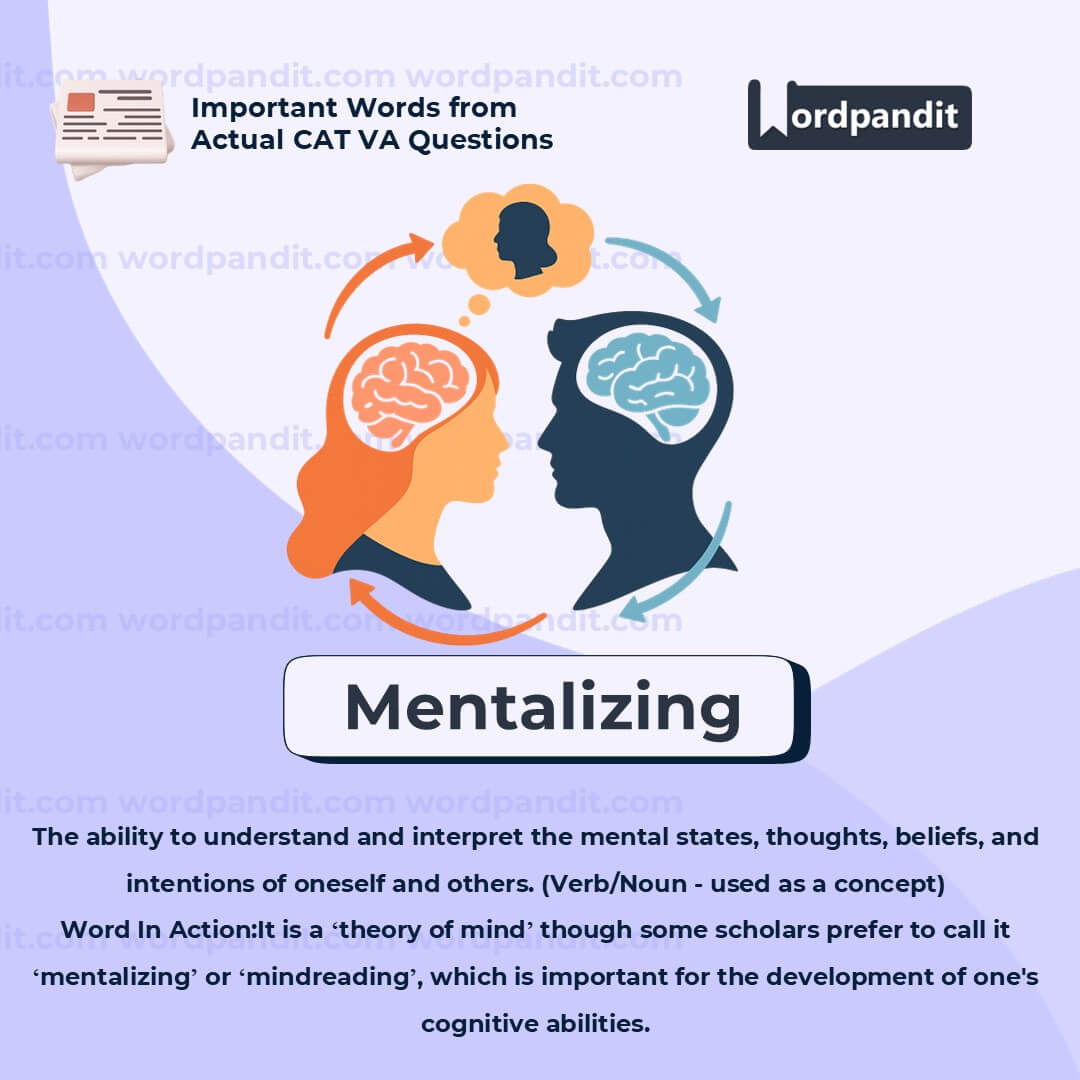 Meaning: The ability to understand or predict the mental states of others (Verb/Noun — gerund form of “mentalize”)