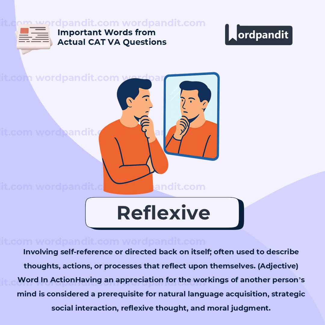 “Reflexive” is key in philosophy, psychology, sociology, and writing. It signals an ability to examine one’s own position, biases, and thought processes — crucial for ethical reasoning, teaching, and leadership.