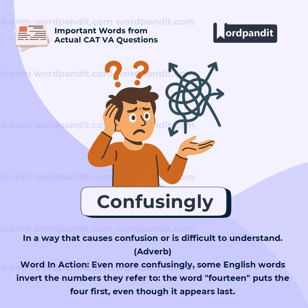 Use “confusingly” when describing situations, instructions, or behaviors that don’t follow a clear or expected pattern. It’s a helpful word for expressing frustration or pointing out irregularities, especially in logic, language, or systems.