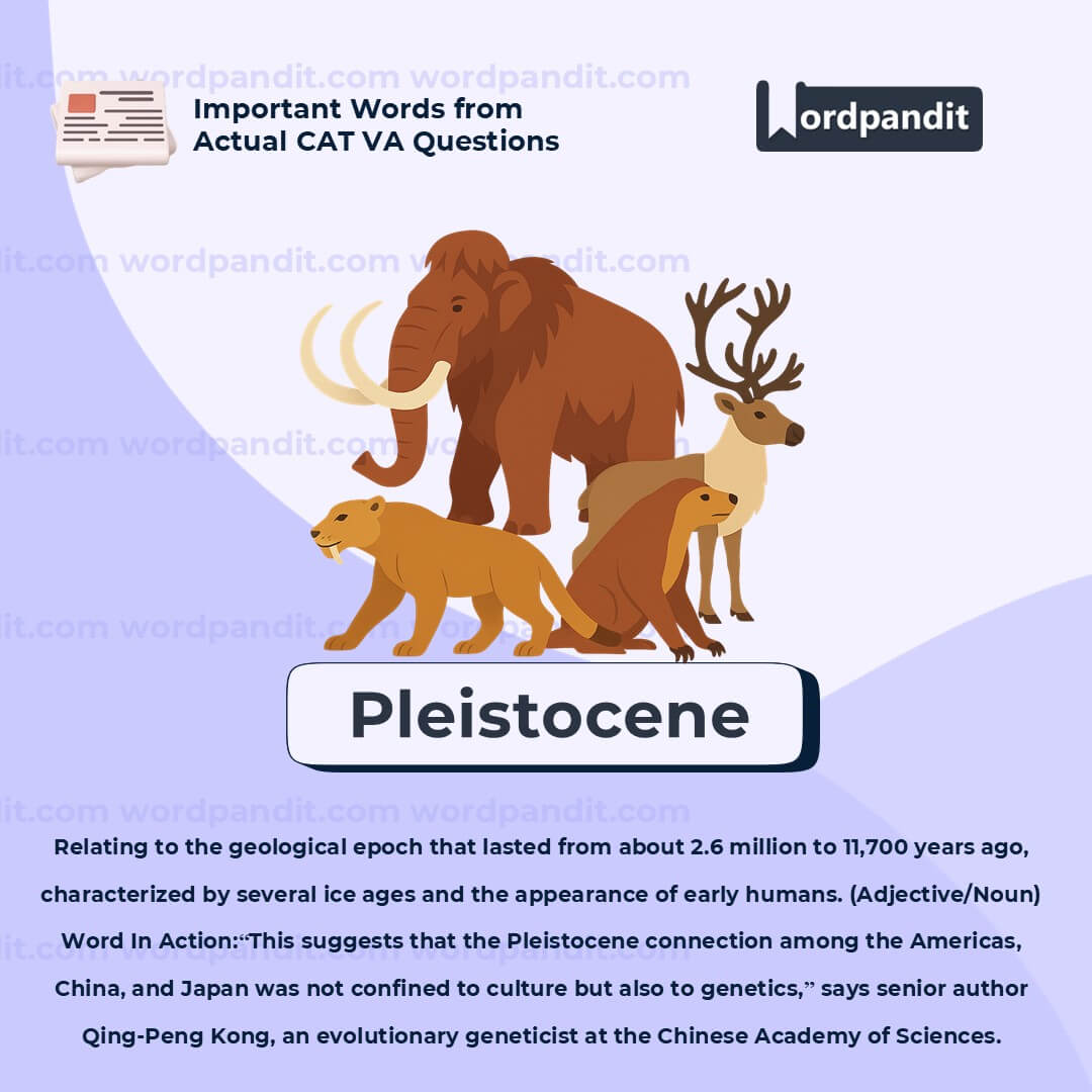 Meaning: Relating to the geological epoch before the Holocene, characterized by ice ages and early human development (Adjective/Noun)