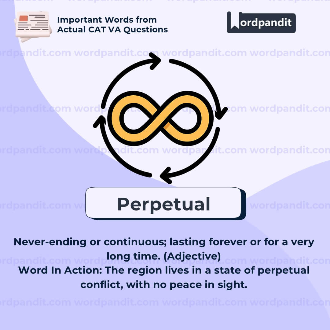 "Perpetual" is a strong word to convey enduring statesâused in both literal and metaphorical contexts. Itâs a great choice for talking about time, habits, cycles, and even emotional states. A useful word for both descriptive writing and abstract discussions.