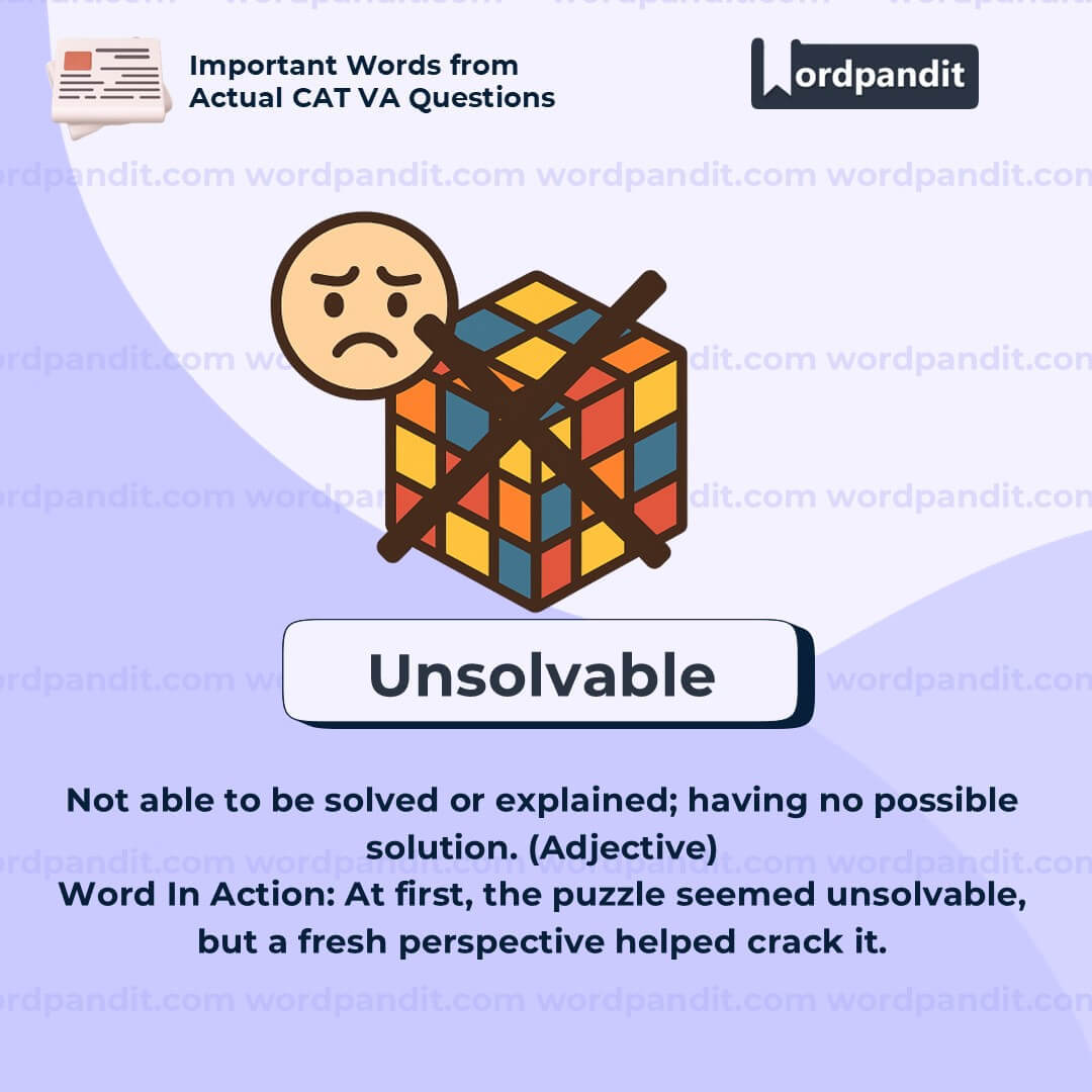Break it down: âUn-â (not) + âsolvableâ (can be solved). Think of a locked puzzle box with no keyâunsolvable!
