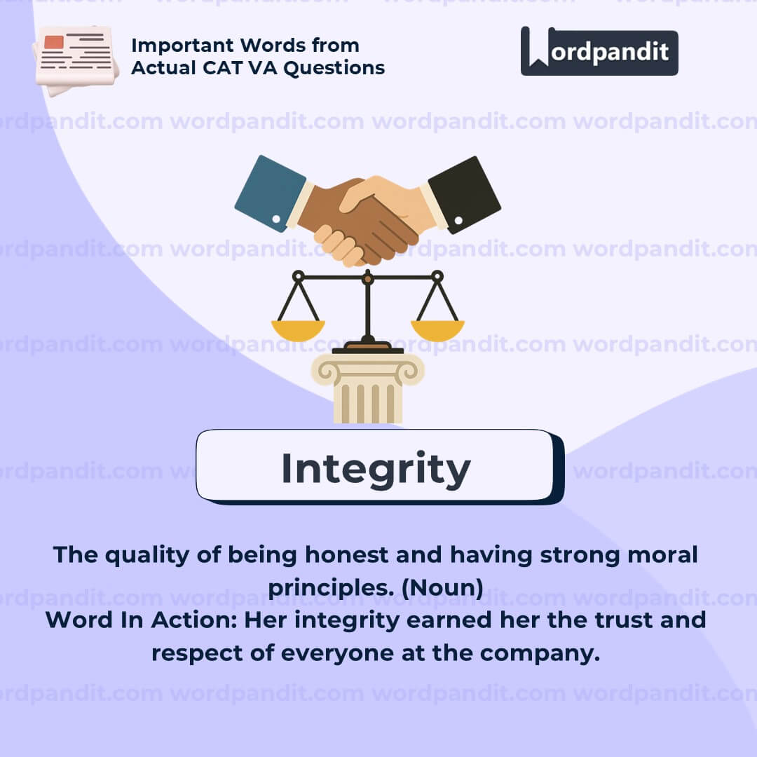 Think of "integrity" as someone who is âentirelyâ trustworthyâcomplete in their morals and consistent in their actions.