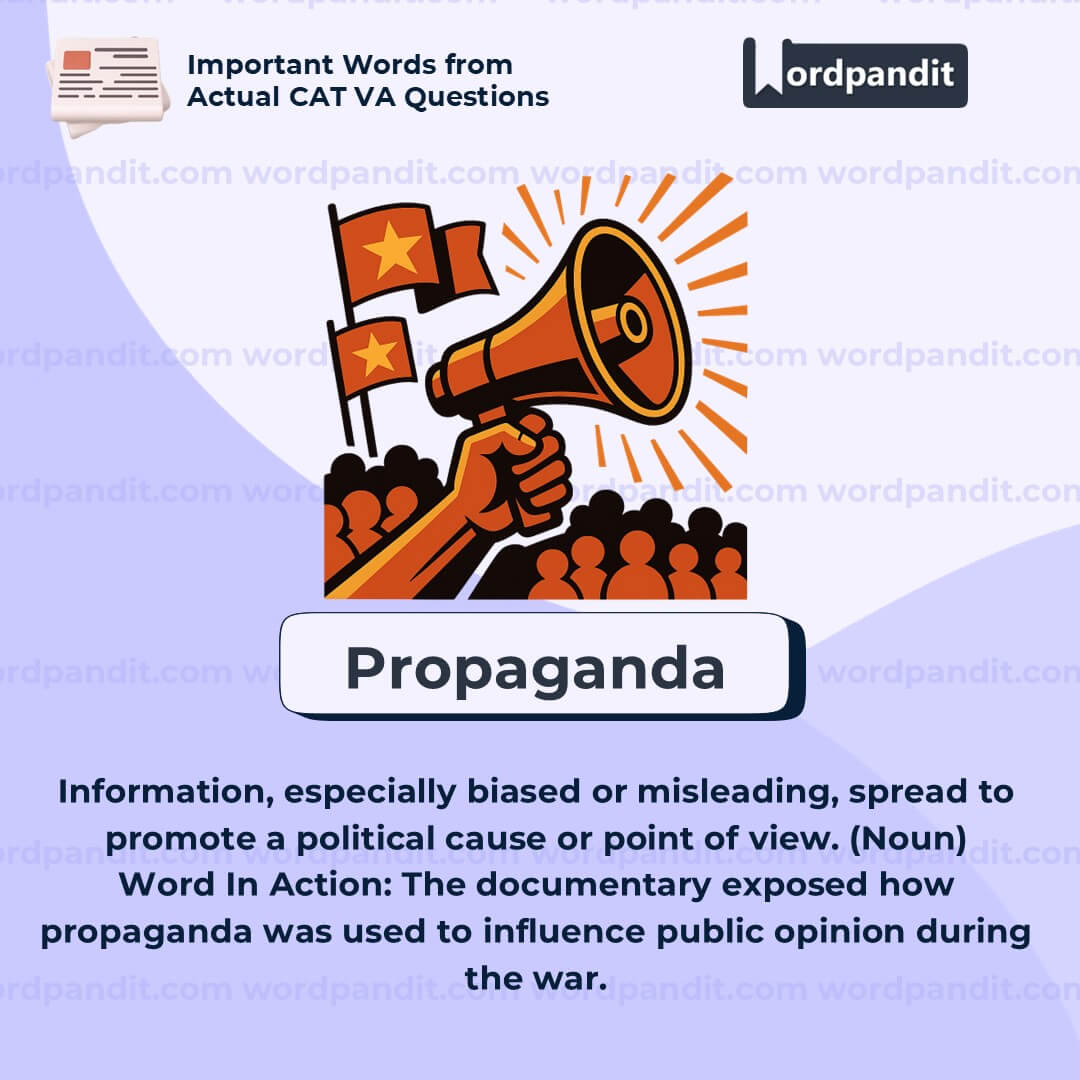 Meaning: Information, especially biased or misleading, used to promote a political cause or ideology. (Noun)