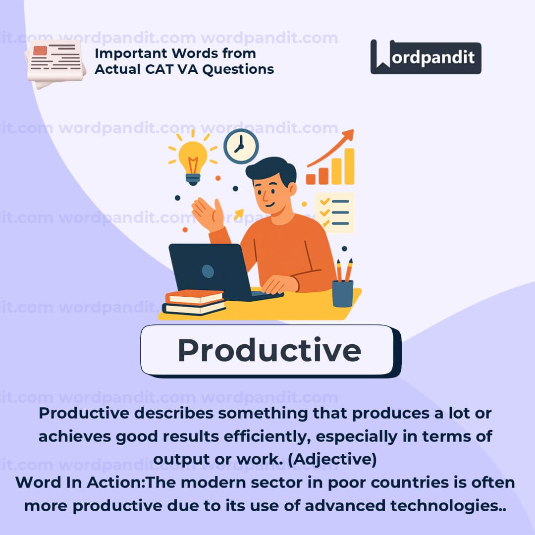 âProductiveâ is a versatile word used across multiple contextsâeconomic, academic, and personal. In exams and essays, itâs valuable when discussing efficiency, growth, or time management. Always pair it with a clear subject: a productive sector, a productive individual, a productive strategy, etc.