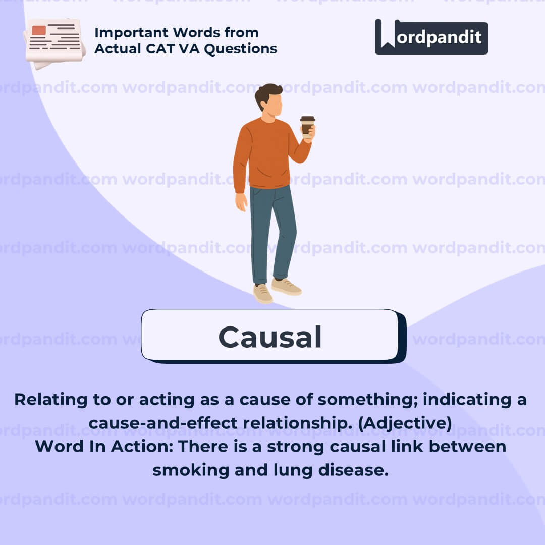 Meaning: Relating to or acting as a cause (adjective)