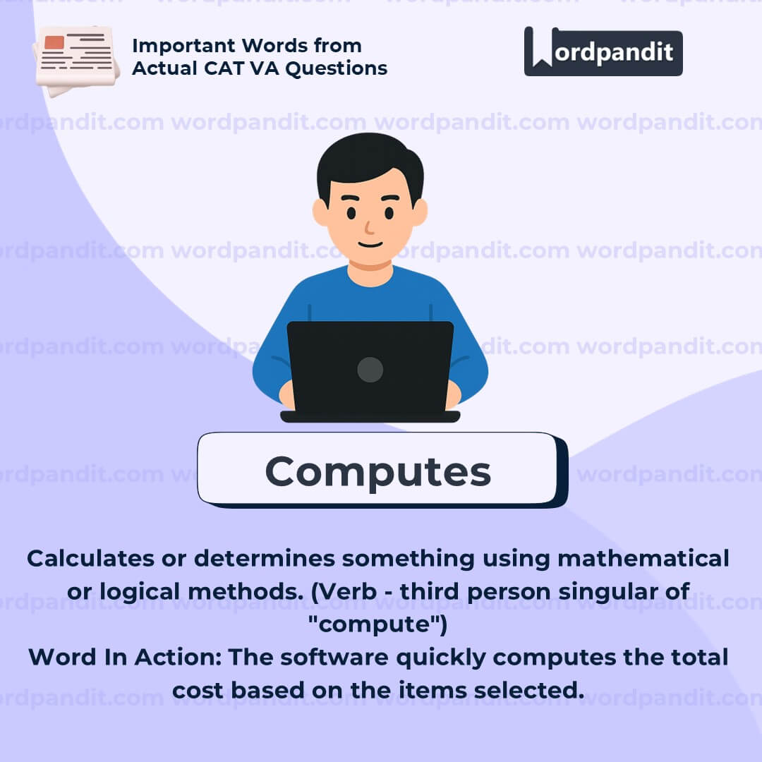 âComputesâ refers to the act of calculating or processing information logically, either by a machine or a person. In the context of the human mind, it suggests the brainâs ability to analyze data, assess possibilities, or generate predictions using mental processes. Itâs not always about numbersâsometimes it means evaluating outcomes or forming judgments through systematic thought.