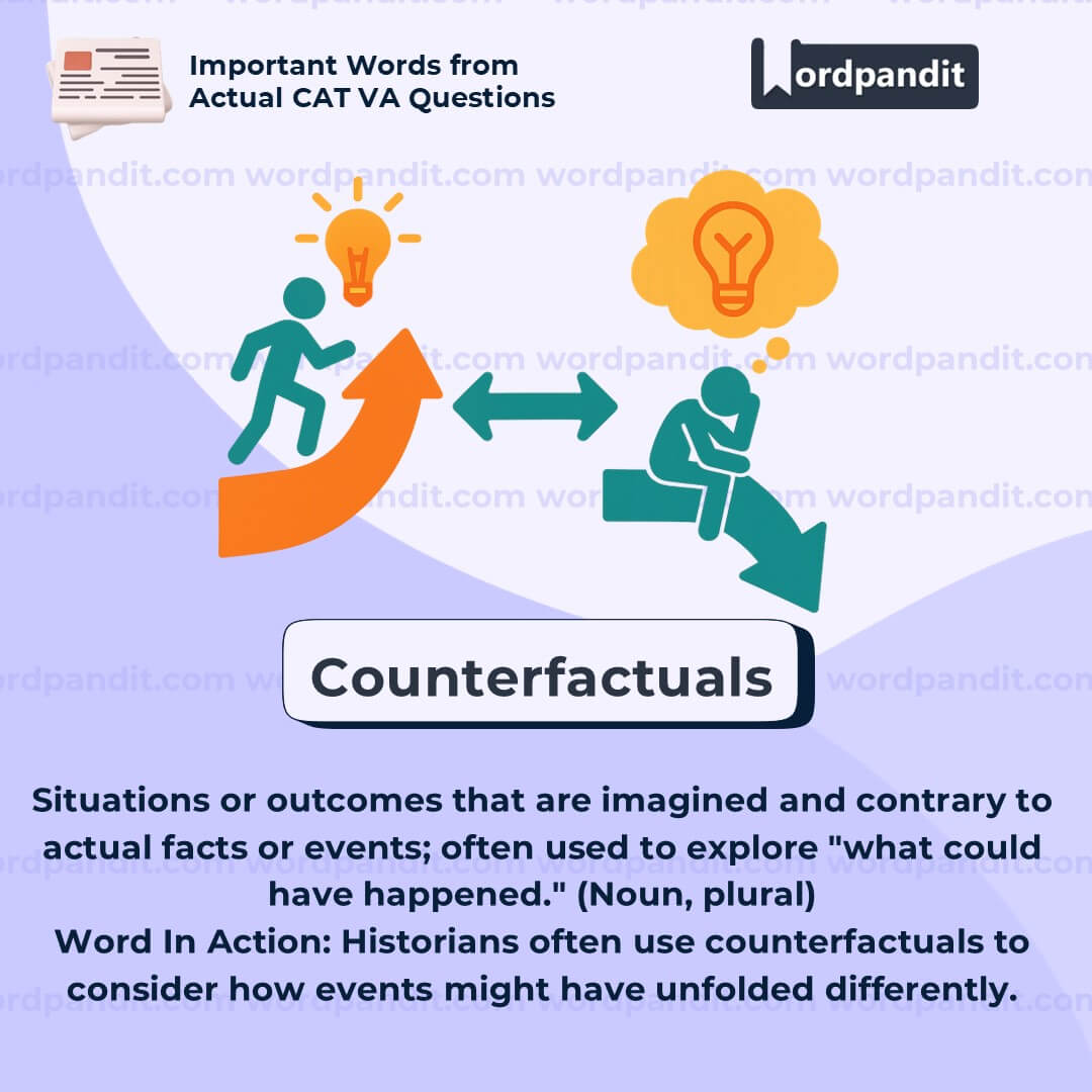Meaning: Hypothetical scenarios or outcomes that differ from actual events (noun)