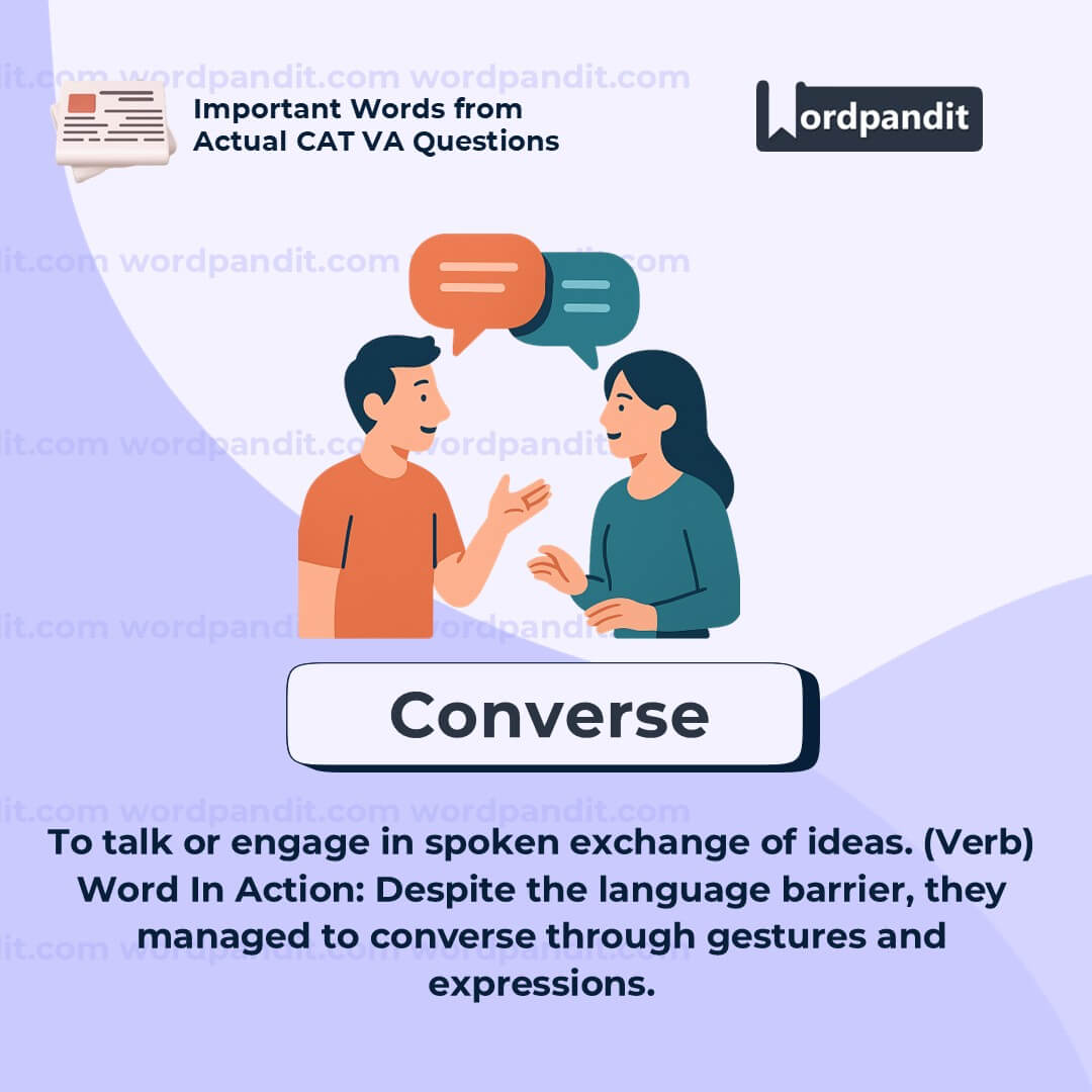 Think of “converse” as two people turning thoughts back and forth—it comes from Latin roots meaning “to turn with.”