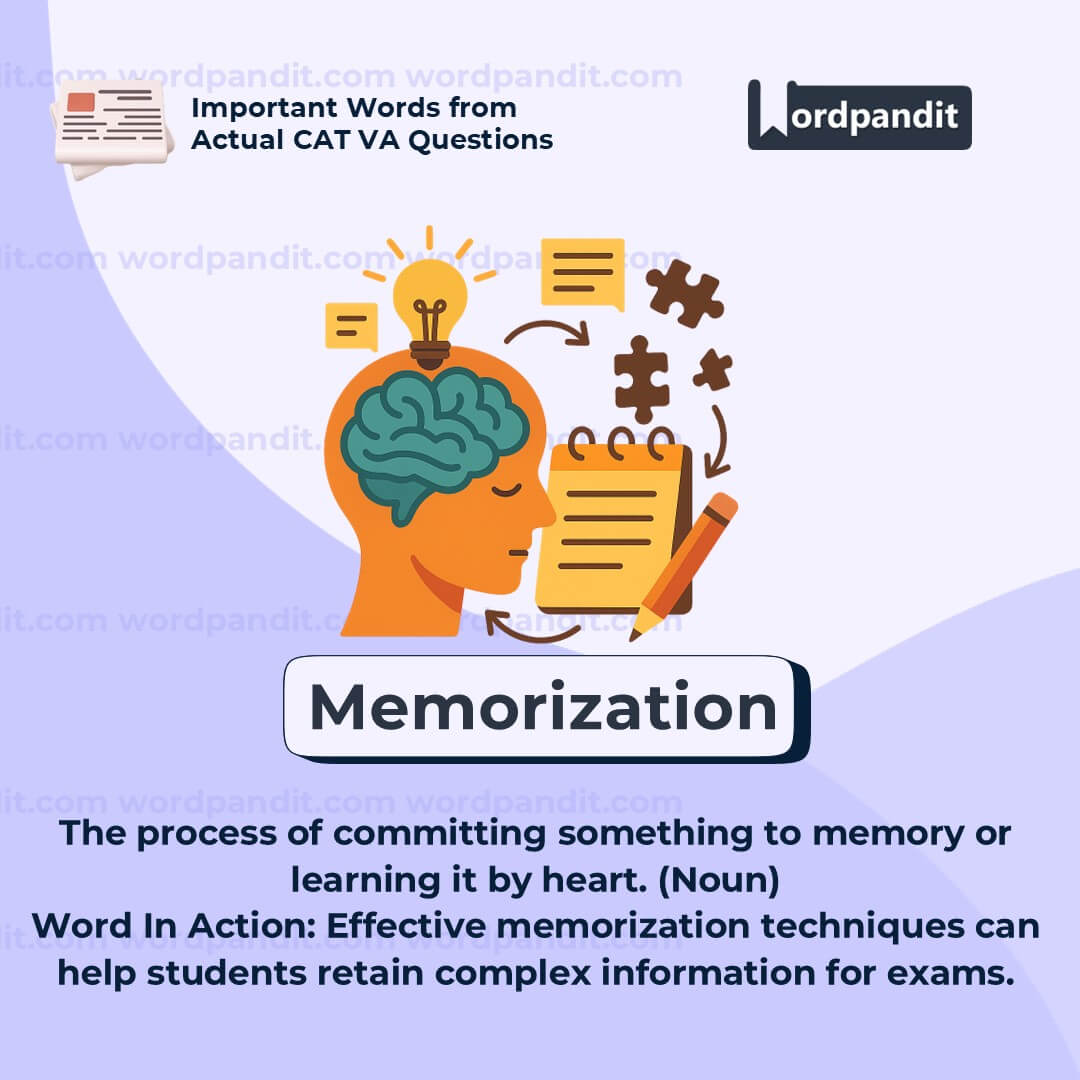 âMemorizationâ is the process of committing something to memory so that it can be recalled later. In times before widespread printing, learning often depended on listening and retaining large amounts of information mentally, since texts were rare or inaccessible. This made memorization an essential skill. The printing press shifted this by making information available in written form, reducing the burden on memory and allowing for repeated reference and study instead.