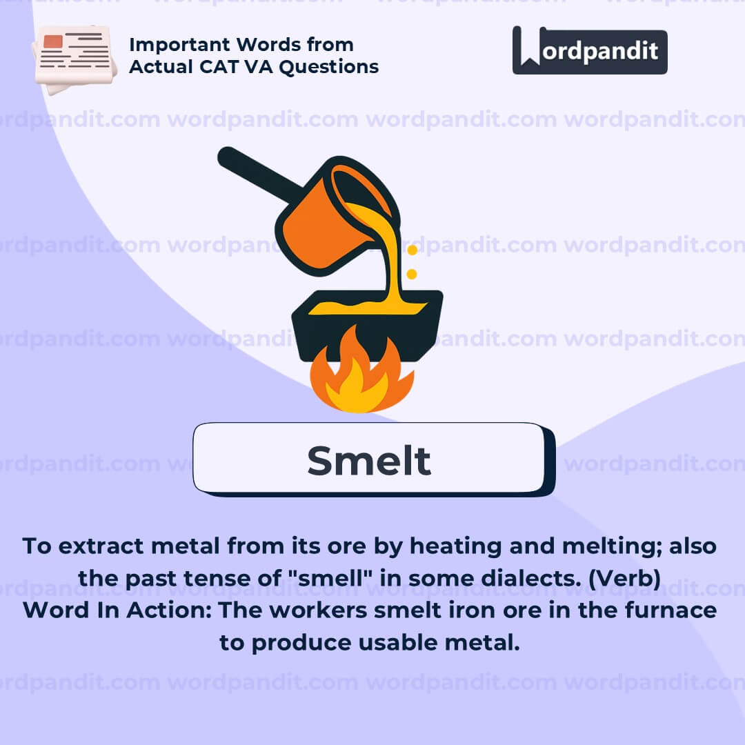 Smelt = "SMELl + mELT" â Imagine the smell of hot metal as it melts in a furnace to extract something valuable!
