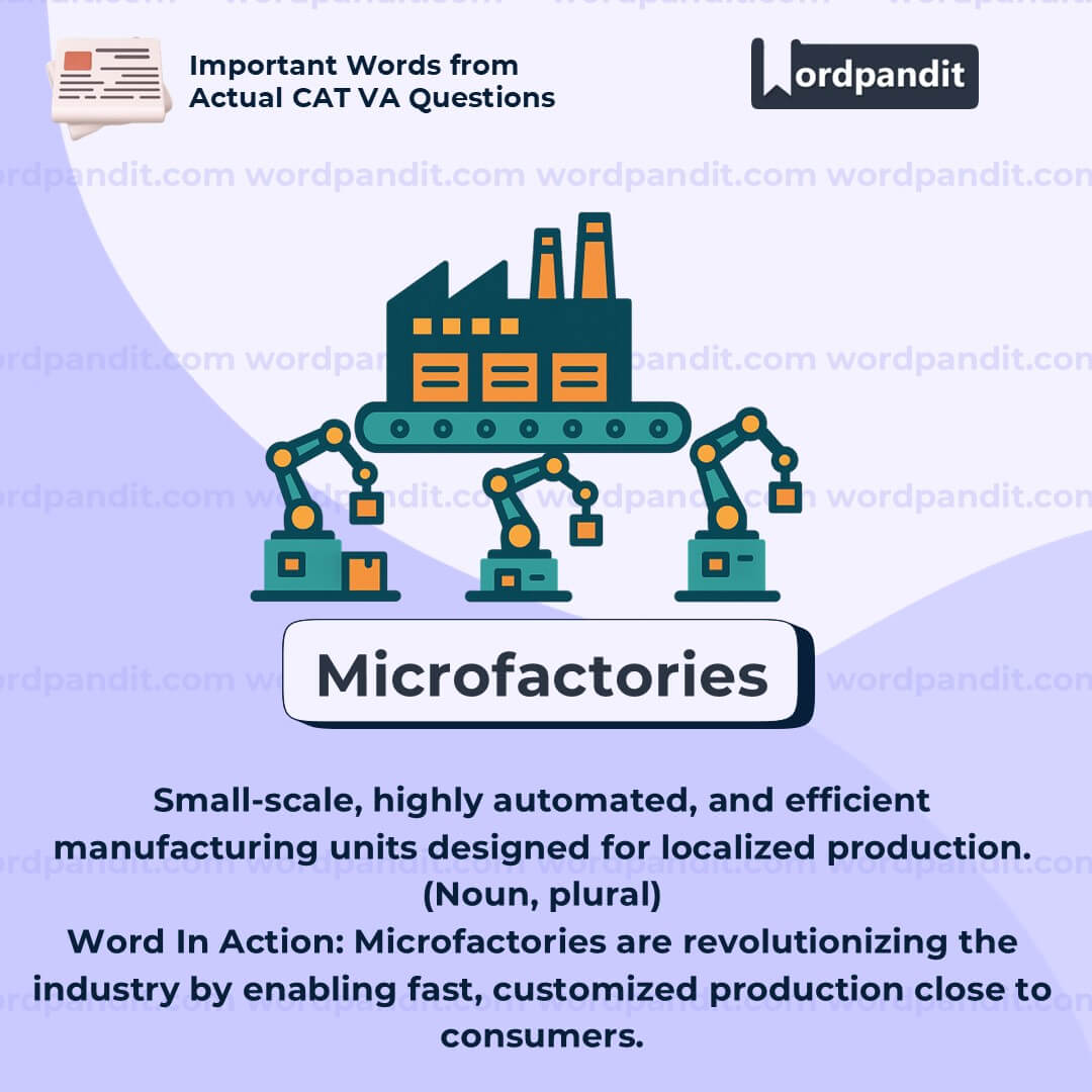 Etymology: Blend of "micro" (small) and "factory" (a place where things are manufactured); a modern term popularized with advances in automation and sustainability.