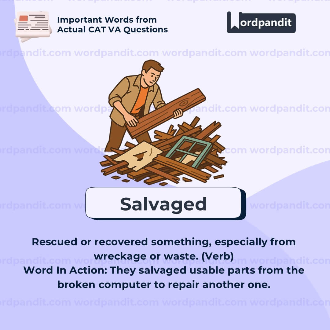 Salvaged sounds like "saved"âjust remember, to salvage is to save something valuable from being wasted or lost.
