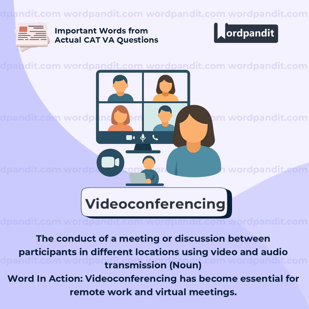 Meaning: The conduct of a meeting or discussion between participants in different locations using video and audio transmission (Noun)