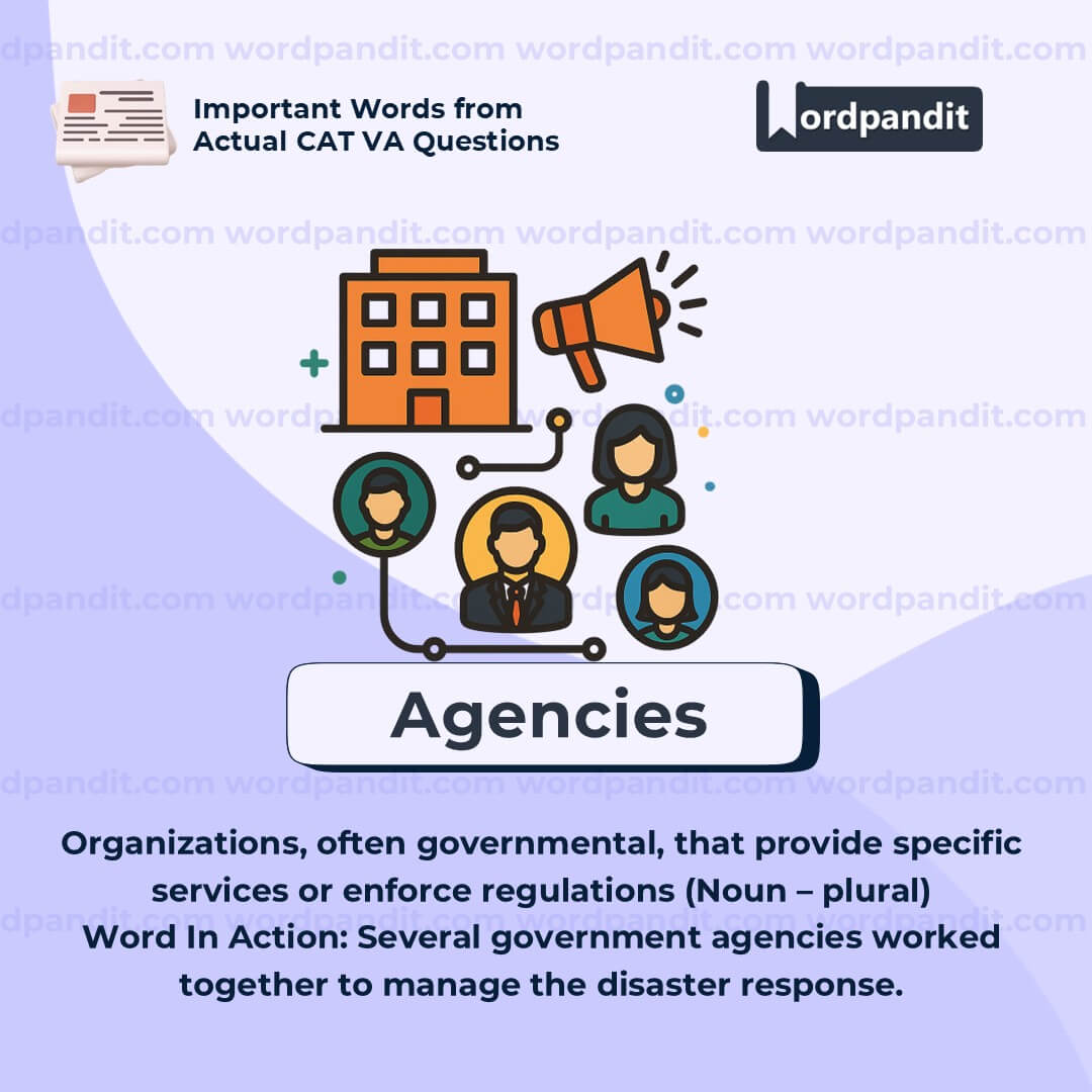 Meaning: Organizations, often governmental, that provide specific services or enforce regulations (Noun â plural)
