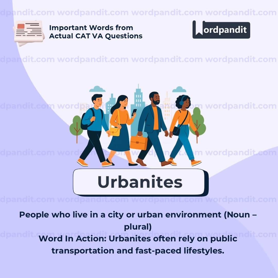 âUrbaniteâ = Urban + -ite â a person tied to the city. Think of skyscrapers and subways when you hear this word.
