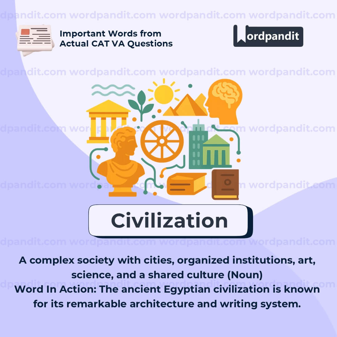 Meaning: A complex society with cities, organized institutions, art, science, and a shared culture (Noun)