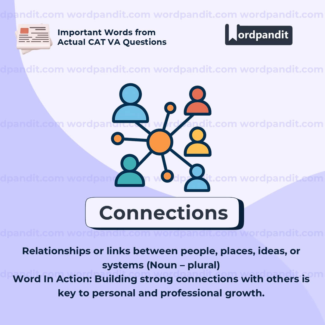 âConnectionsâ is a core vocabulary word across multiple domainsânetworking, history, technology, and personal relationships. Always think about what kinds of links are being describedâphysical (roads), emotional (friendship), intellectual (ideas), or digital (networks). In history and geography, itâs especially important when describing routes like the Silk Roads.