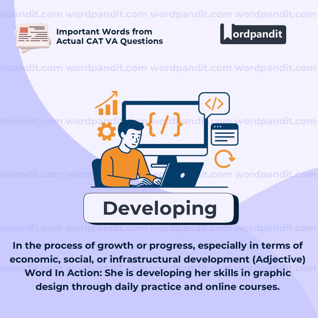 âDevelopingâ = still in progress or growing. Imagine a city being built: structures are going up, but it's not finished yet.