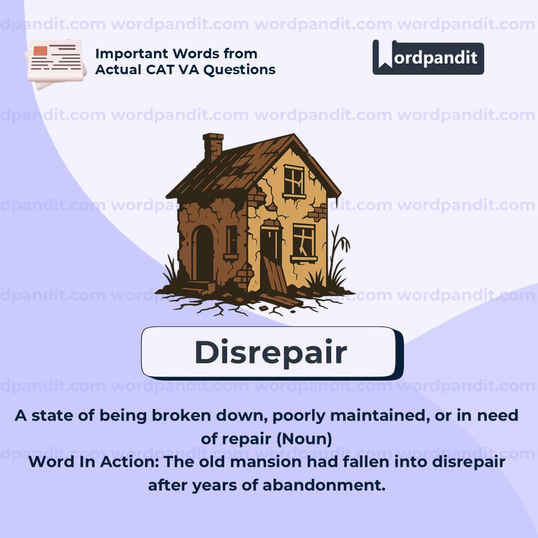 Meaning: A state of being broken down, poorly maintained, or in need of repair (Noun)