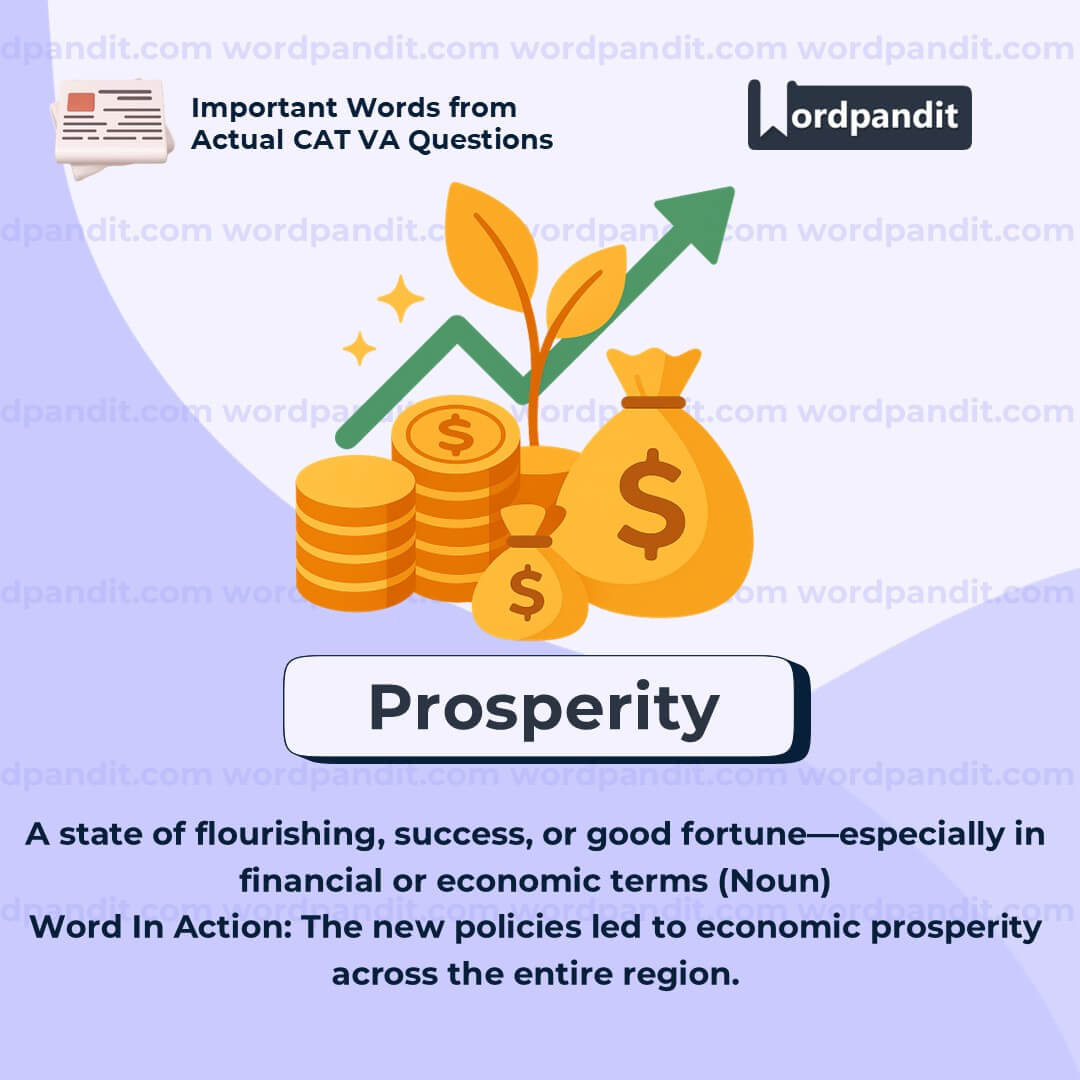 Meaning: A state of flourishing, success, or good fortuneâespecially in financial or economic terms (Noun)