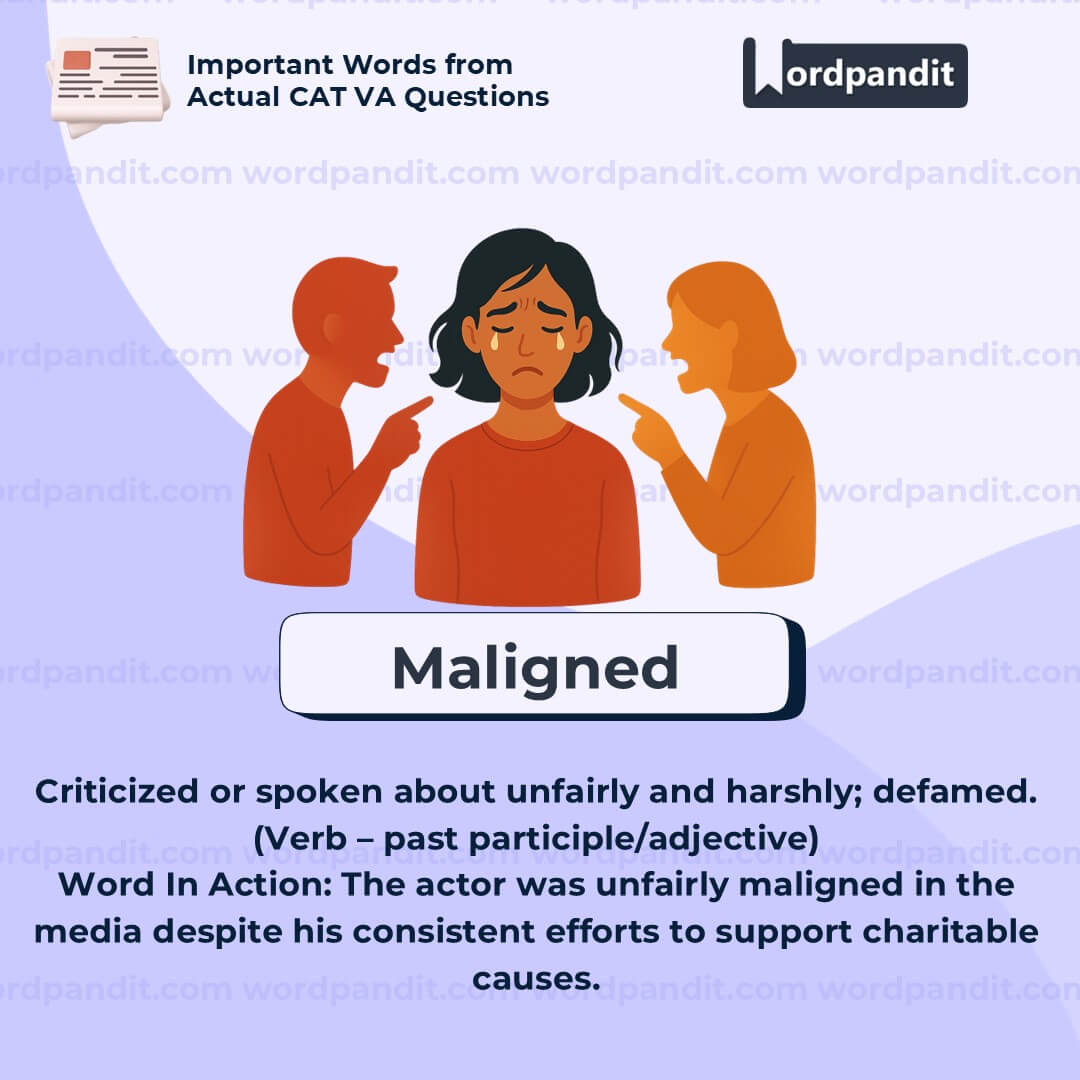 “Maligned” comes from “mal-” (bad) — think of it as being painted in a bad light.