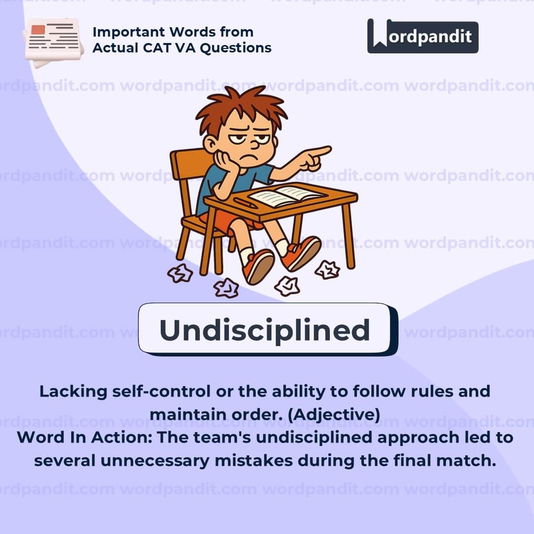 “Un-” means “not,” and “disciplined” means controlled—so “undisciplined” = not controlled or not rule-following.