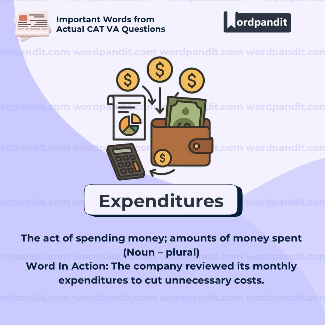 âExpendituresâ is a formal, financial word. Use it in place of everyday terms like âspendingâ when you want to sound more precise or professional. It's especially useful in writing about budgets, planning, or economic impact.