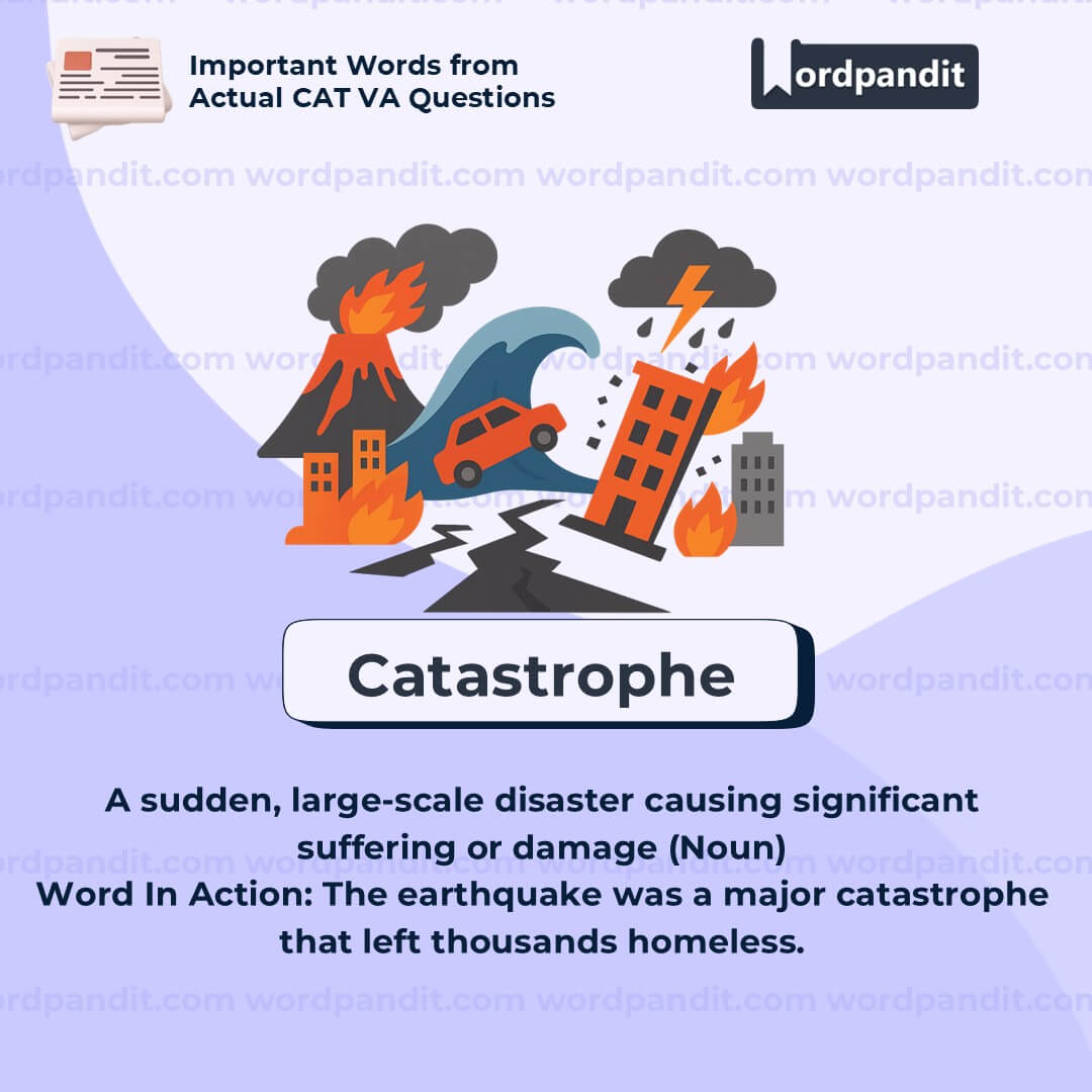 Meaning: A sudden, large-scale disaster causing significant suffering or damage (Noun)