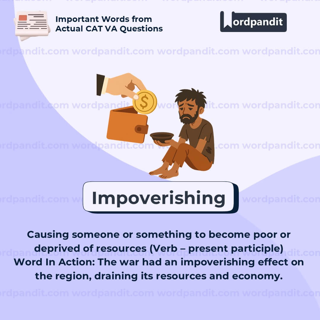 âImpoverishingâ comes from âpoor.â Think of it as something that makes you or a community poorâeconomically or otherwise.