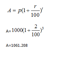 Question 1: An amount of Rs 1000 is borrowed at CI at the rate of 2% per annum. What will be the amount to be paid after 3 years if the interest is compounded annually?