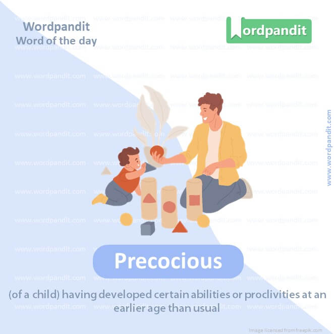 Meaning: (of a child) having developed certain abilities or proclivities at an earlier age than usual.