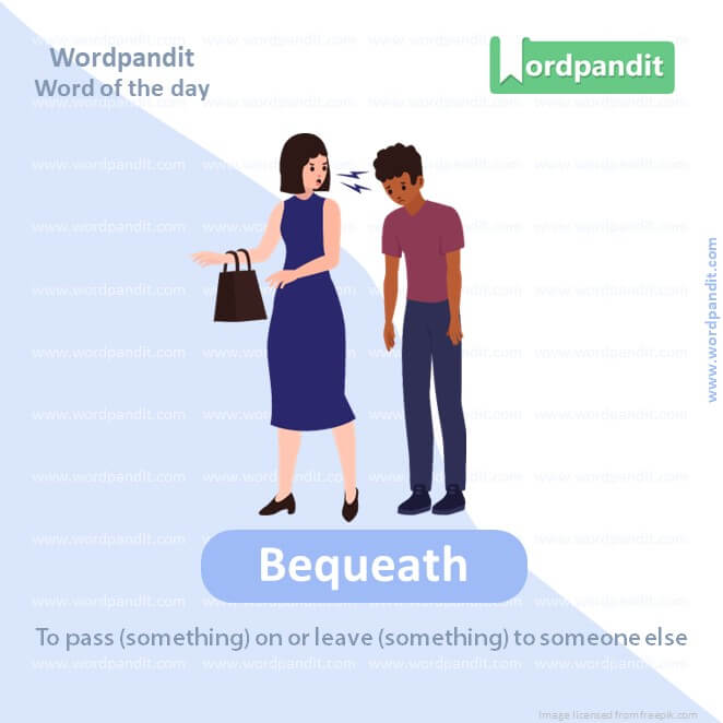 Synonyms: Leave, Hand down, Pass on, Give, Donate, Will, Entrust